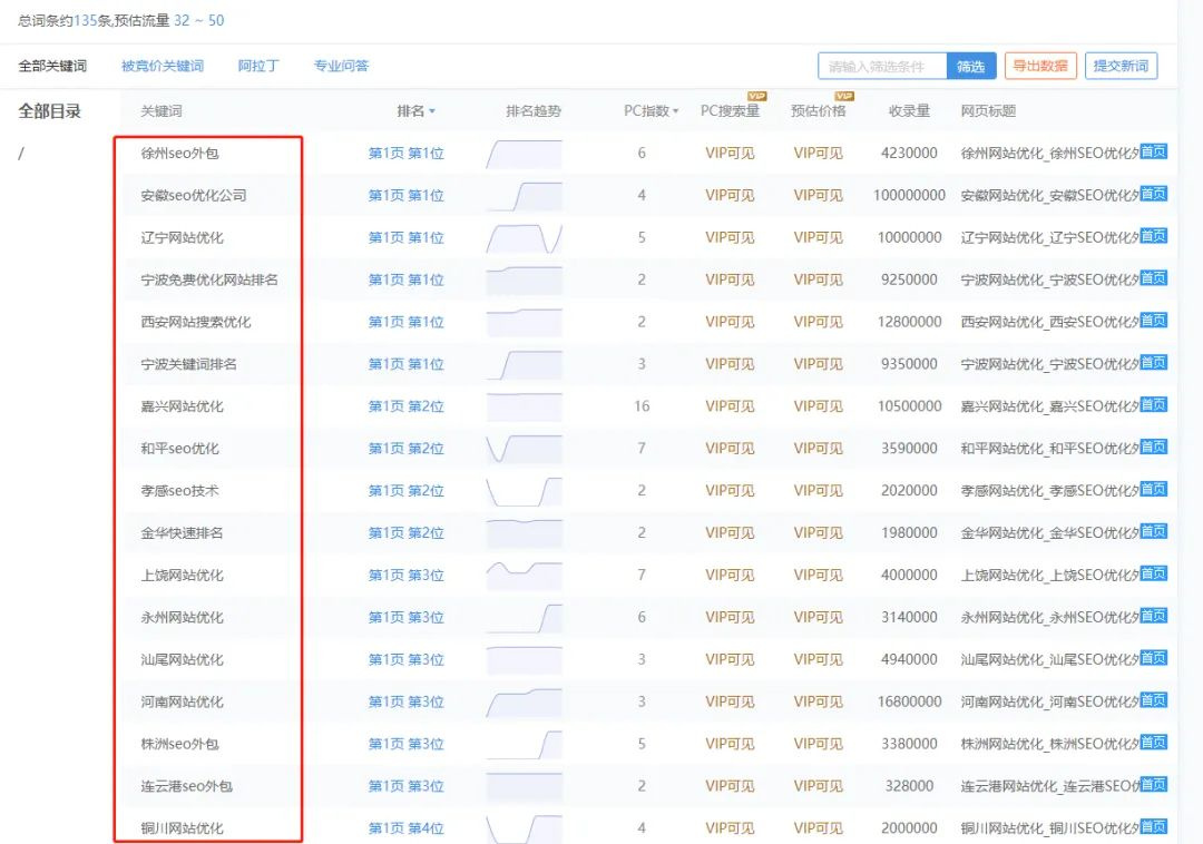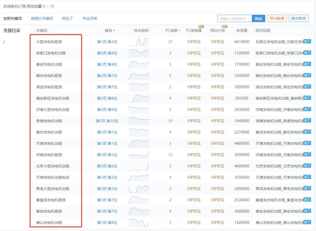 客戶關鍵詞排名情況: